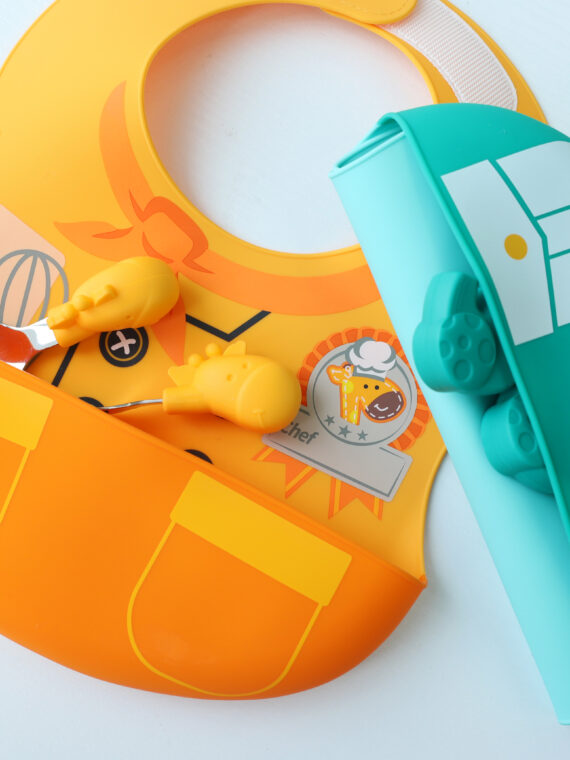Marcus & Marcus Creative Play Wide Coverage Bib comes with 2 themes – The Little Chef and The Little Pilot. The extra large crumb catcher is big enough to keep the clothes stay clean and the wide shoulder design gives your little one more coverage
